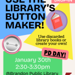 28jan7:00 pm9:00 pmStitching in the Stacks7:00 pm - 9:00 pm Brandon Public Library